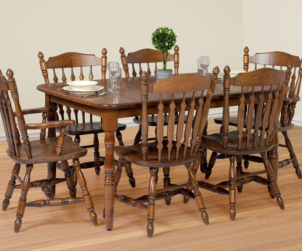 Table shown 42 x 60″ in rustic cherry with OCS-110 medium stain. Rounded corner top with 3⁄4″ rounded edge.