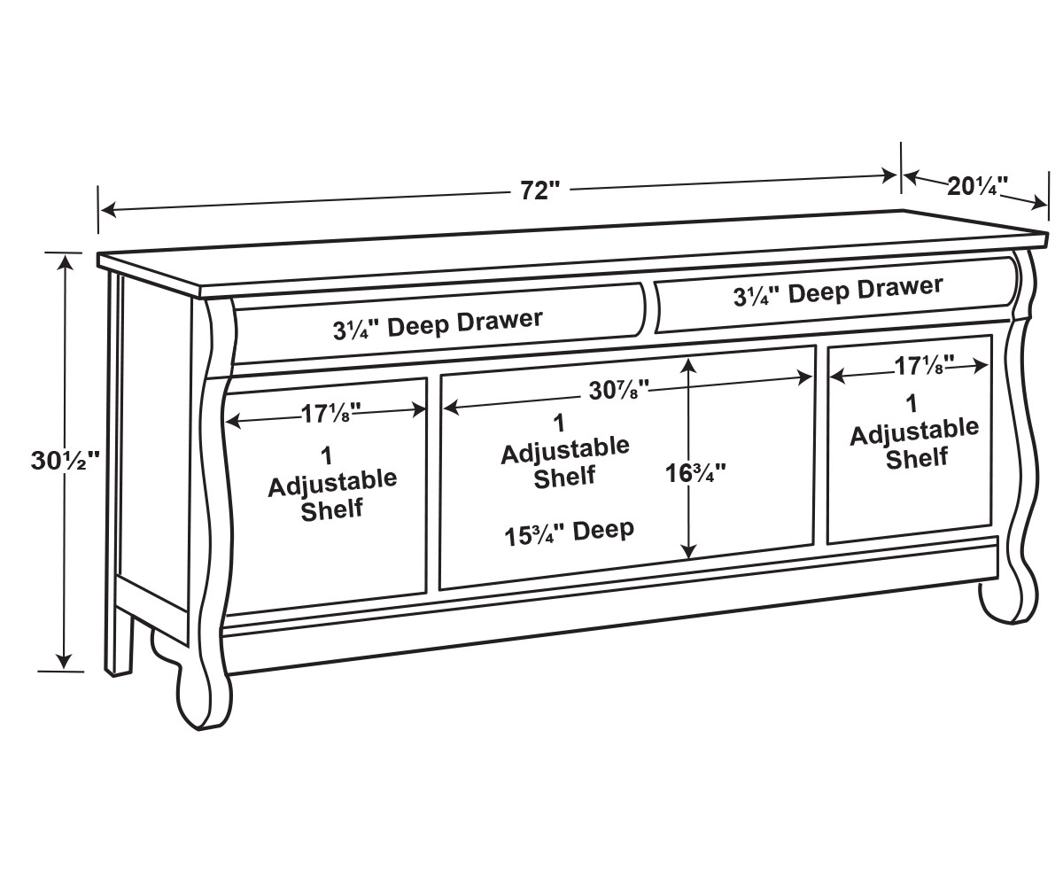 Old Classic Sleigh Media Stand – 72″W