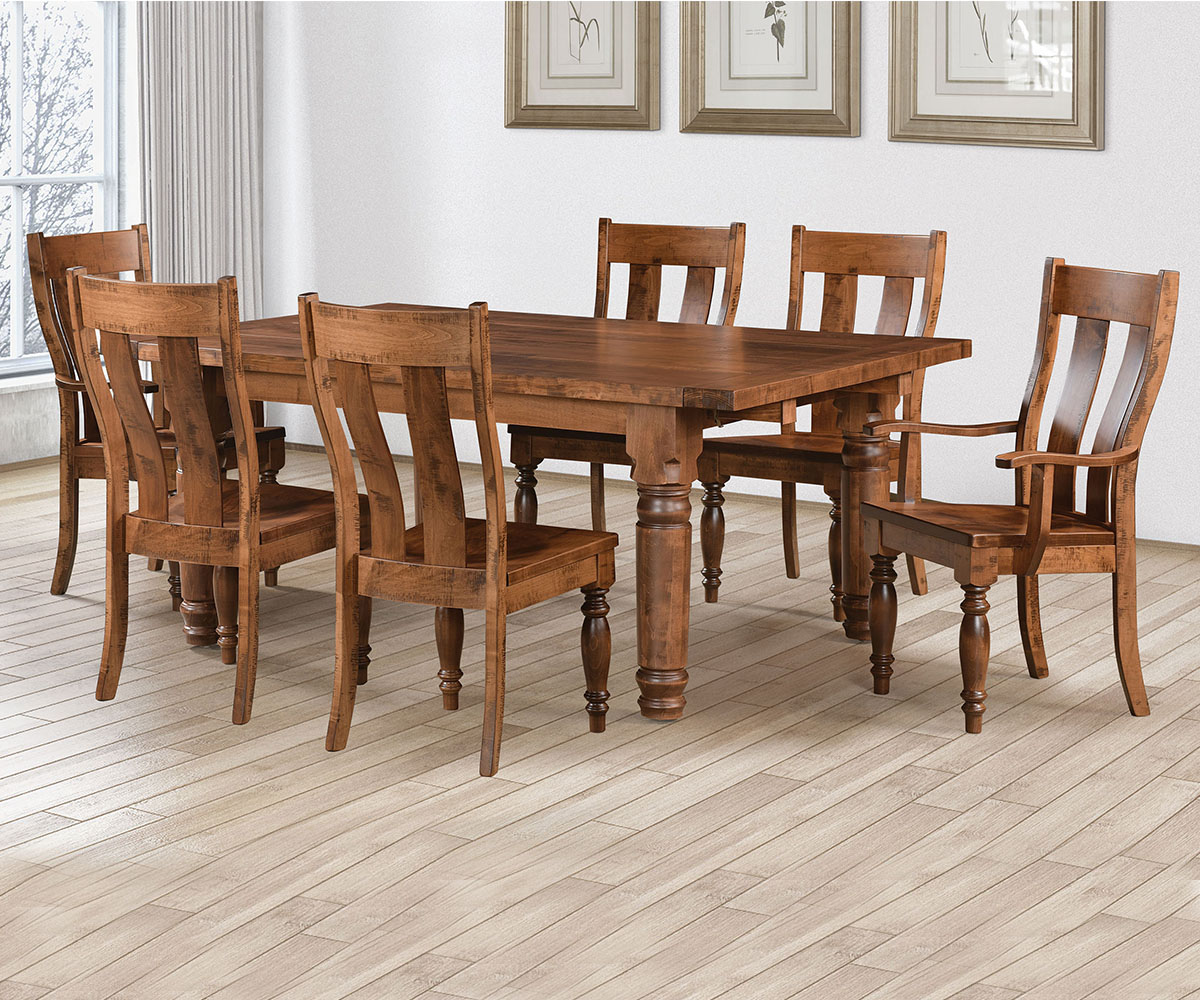 Features: • Sawmarks on the table top • 18″ or 22″ Leaves • Leaves are added in at the ends